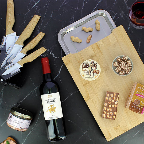 Avec une multiplicité de choix d’objets cadeaux, vous pouvez présenter votre colis gourmand CSE avec un sac à dos, un sac déjeuner isotherme, un panier de courses, une jolie valisette rouge, une malle en bois ou tout simplement offrir un coffret traditionnel vins et gourmandises. Un colis gourmand salé ou sucré selon vos envies et votre budget.